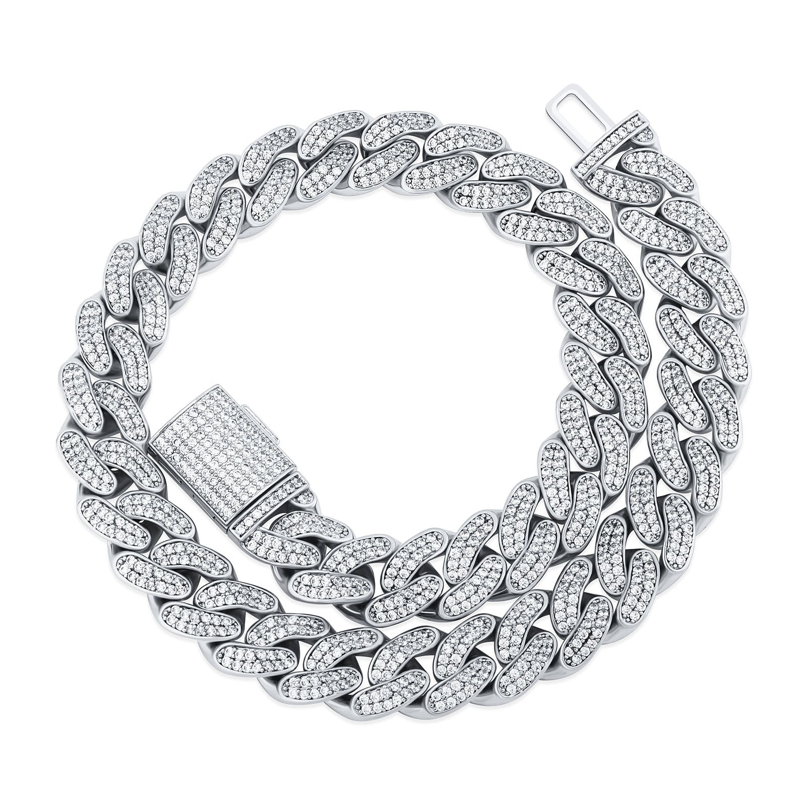 14MM Full Diamond Cuban Chain Necklace Bracelet