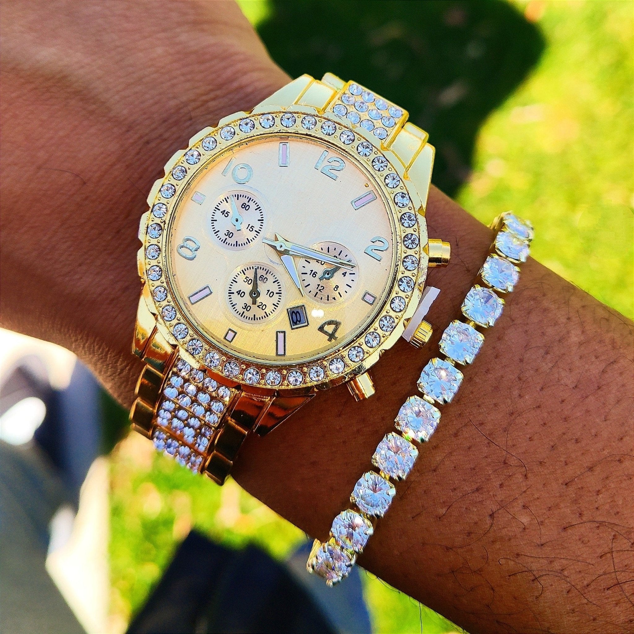 18k Gold Diamond Icy Watch Set