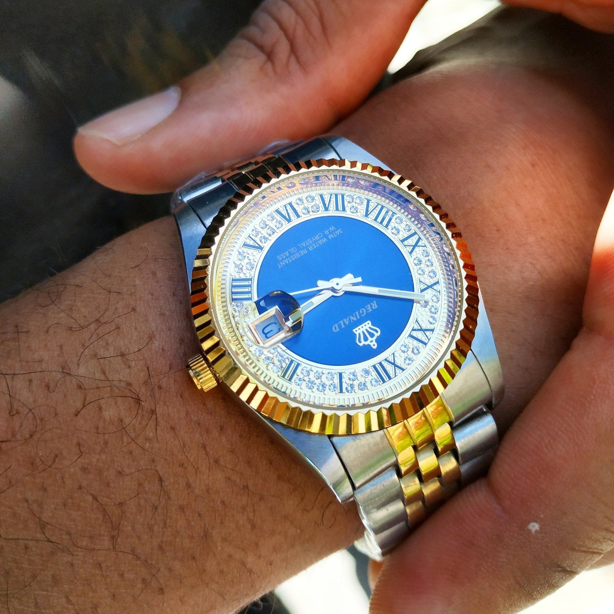 White Gold and Gold with Blue Face